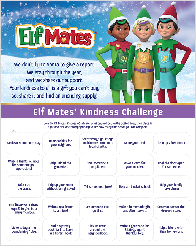 These cheerful elves have been helping Santa share love and generosity for generations, and now they’re here to encourage your family to do the same with the Elf Mates® Kindness Challenge, a 25-day journey filled with fun ideas to nurture empathy and bring joy to others.